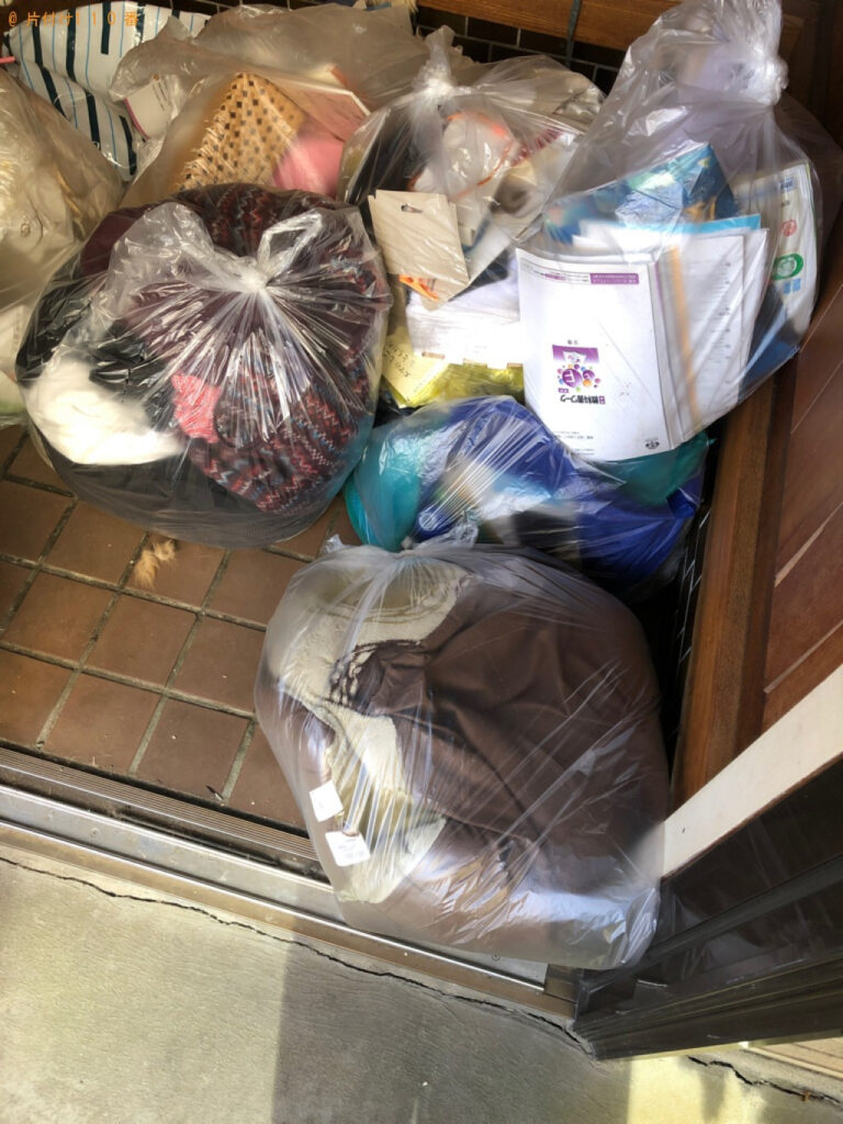 担当のコメント 衣類、雑誌、分別していない一般ごみ等の処理にお困りのお客様からご相談いただきました。予算内だったことがご依頼の決め手になったようです。片付け110番では、分別していないごみも回収させていただきます。不用品がございましたらまたいつでもご相談ください。